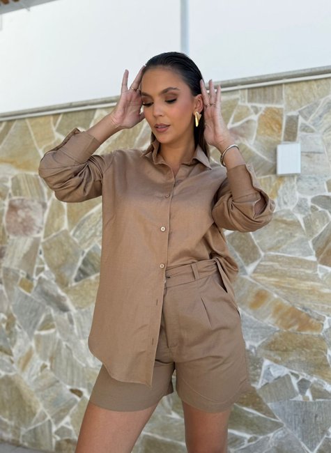 O Short Sara foi produzido em viscolinho, possui entretela no cós, bolsos frontais laterais e bolsos na parte de trás da peça. Modelagem padrão da Lislu Woman.